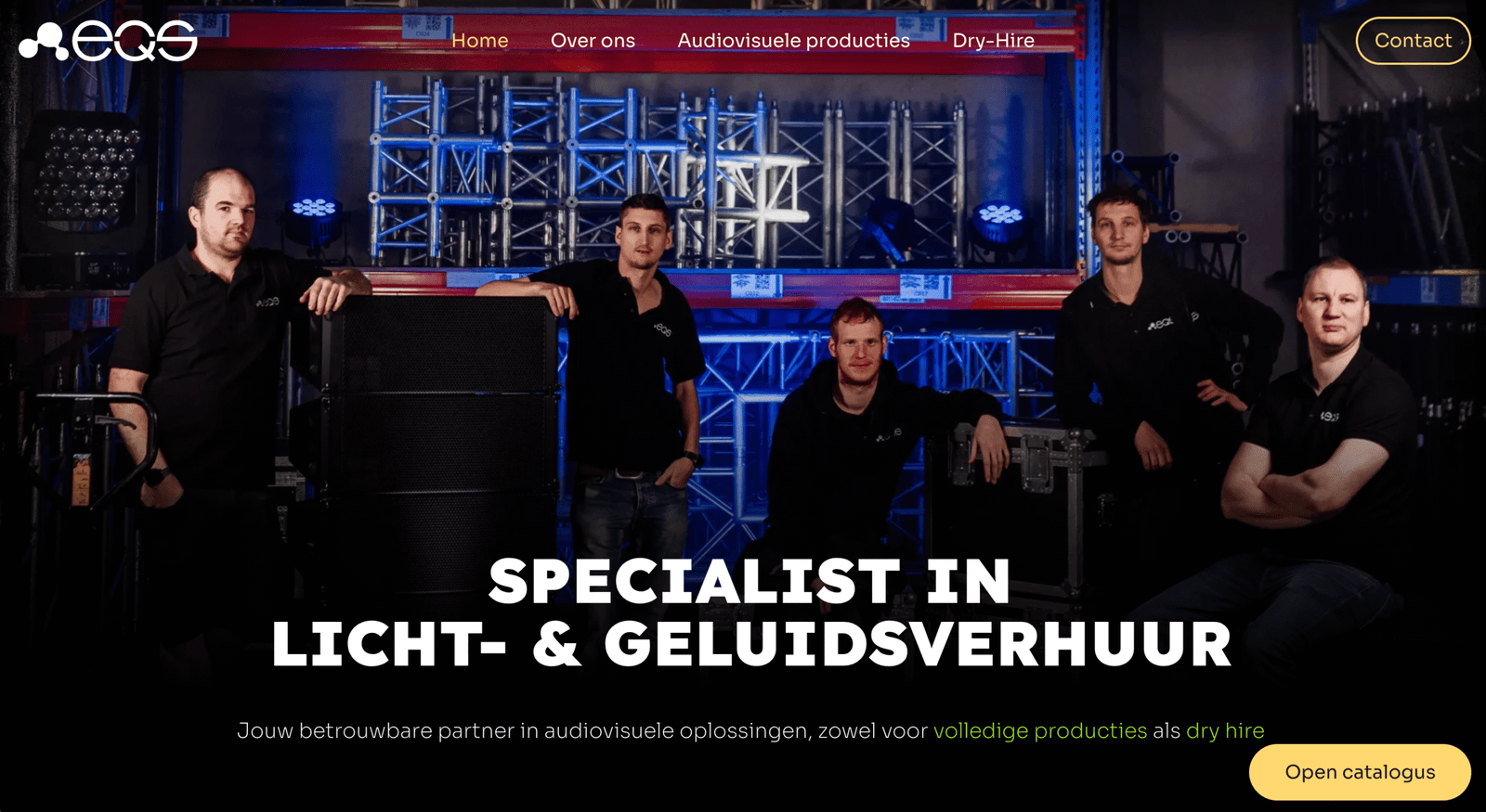 Na het ontwikkelen van een volledig nieuwe branding voor EQS heb ik ook de volledige website opnieuw ontworpen en opgebouwd binnen die nieuwe visuele identiteit. EQS opereert in de vaak wat koude en kille eventsector, maar wilde zich onderscheiden met een moderne en professionele uitstraling die tegelijk warm, familiaal en uitnodigend aanvoelt voor zowel bestaande klanten als nieuwe bezoekers.